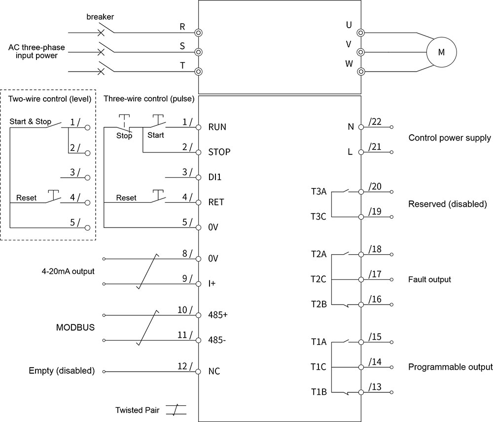 مزود طاقة التحكم المستقل (220VAC) ، إعداد المعلمات ممكن أيضًا بدون مزود الطاقة (380 فولت) |